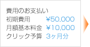 ※テポジットとして、初期費用+月額料金基本料金+クリック料金予算×3ヶ月分が必要です。